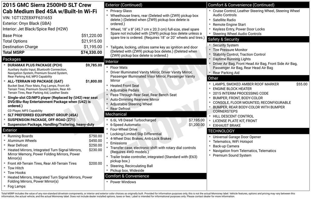 - Vehicle Name: GMC Sierra 2500HD available WiFi