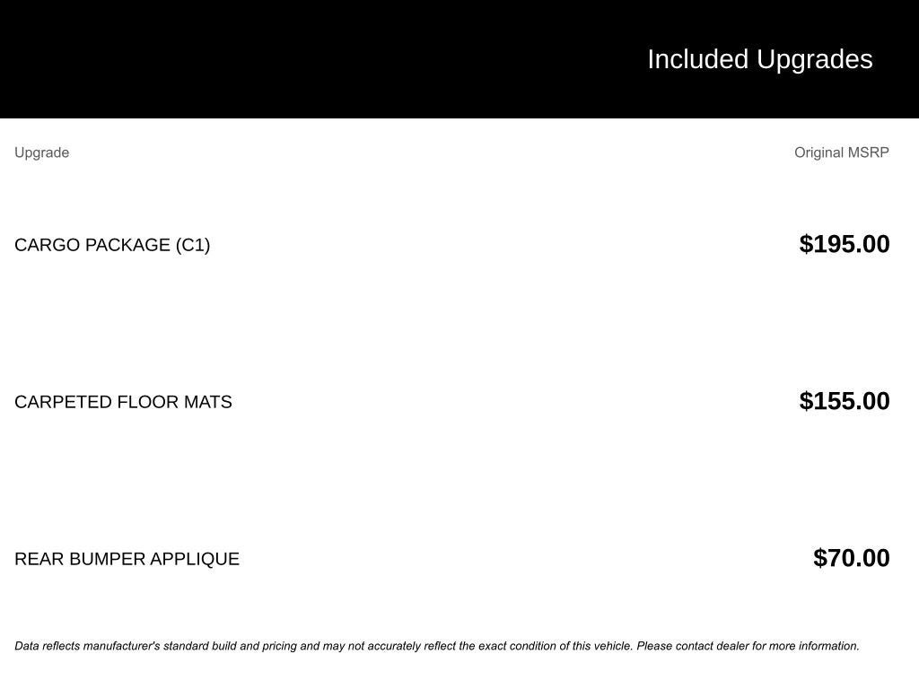 - Rear seatback upholstery: Carpet rear seatback upholstery