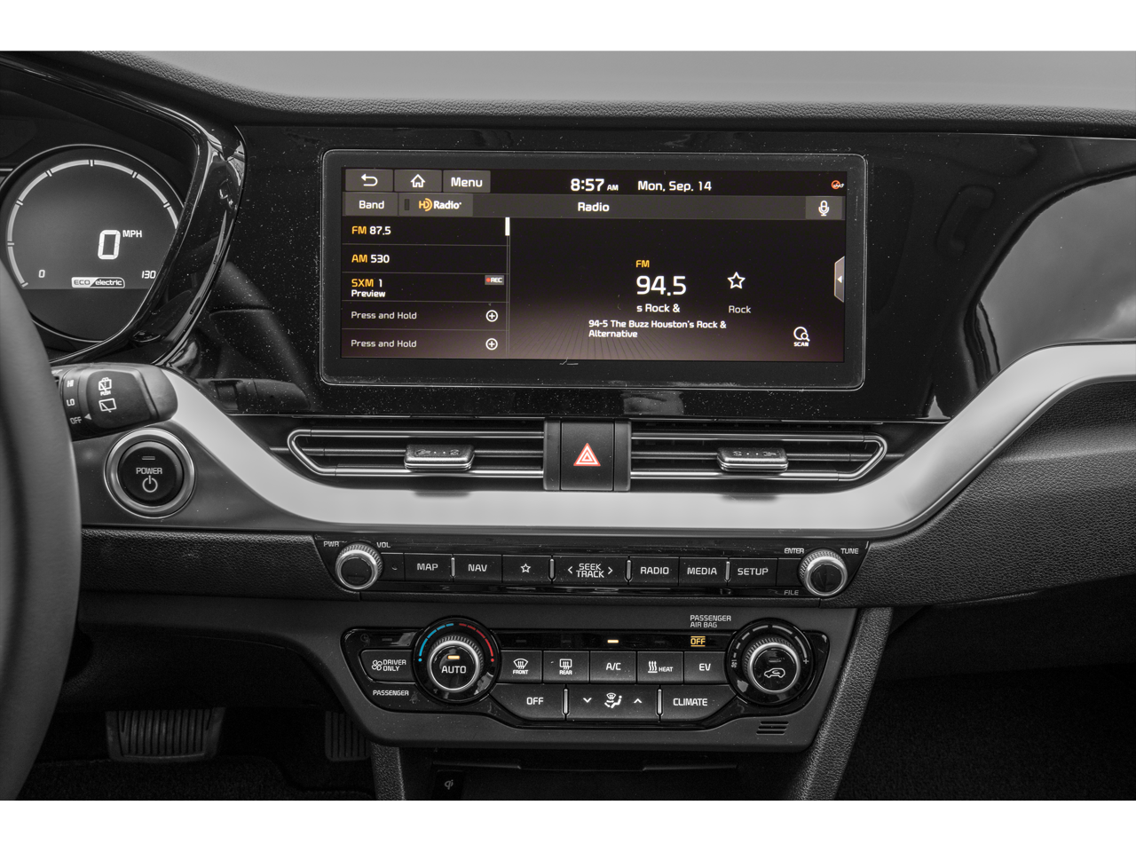 This 2020 Kia Niro EV comes equipped with, 17 Alloy Wheels, 4-Wheel Disc Brakes, 8 Speakers, 8.206 Axle Ratio, ABS brakes, Air Conditioning, Alloy wheels, AM/FM radio: SiriusXM, Apple CarPlay & Android Auto, Artificial Leather Seat Trim, Automatic temperature control, Battery Heater, Bodyside moldings, Brake assist, Bumpers: body-color, Cargo Mat, Carpeted Floor Mats, Cold Weather Package, Delay-off headlights, Driver door bin, Driver vanity mirror, Dual front impact airbags, Dual front side impact airbags, Electronic Stability Control, Emergency communication system: UVO link 911 Connect, Exterior Parking Camera Rear, Four wheel independent suspension, Front anti-roll bar, Front Bucket Seats, Front Center Armrest, Front fog lights, Front reading lights, Fully automatic headlights, Heat Pump, Heated & Ventilated Front Bucket Seats, Heated door mirrors, Heated front seats, Heated Steering Wheel, Illuminated entry, Knee airbag, Low tire pressure warning, Navigation System, Occupant sensing airbag, Outside temperature display, Overhead airbag, Overhead console, Panic alarm, Passenger door bin, Passenger vanity mirror, Power door mirrors, Power driver seat, Power moonroof, Power steering, Power windows, Radio: harman/kardon Premium Audio System, Rear anti-roll bar, Rear seat center armrest, Rear window defroster, Rear window wiper, Remote keyless entry, Roof rack: rails only, Security system, Speed control, Speed-sensing steering, Split folding rear seat, Spoiler, Steering wheel mounted audio controls, Telescoping steering wheel, Tilt steering wheel, Traction control, Trip computer, Turn signal indicator mirrors, Variably intermittent wipers, Ventilated front seats. Clean CARFAX. Gravity Blue 2020 Kia Niro EV EX Premium FWD 1-Speed Automatic Electric Motor