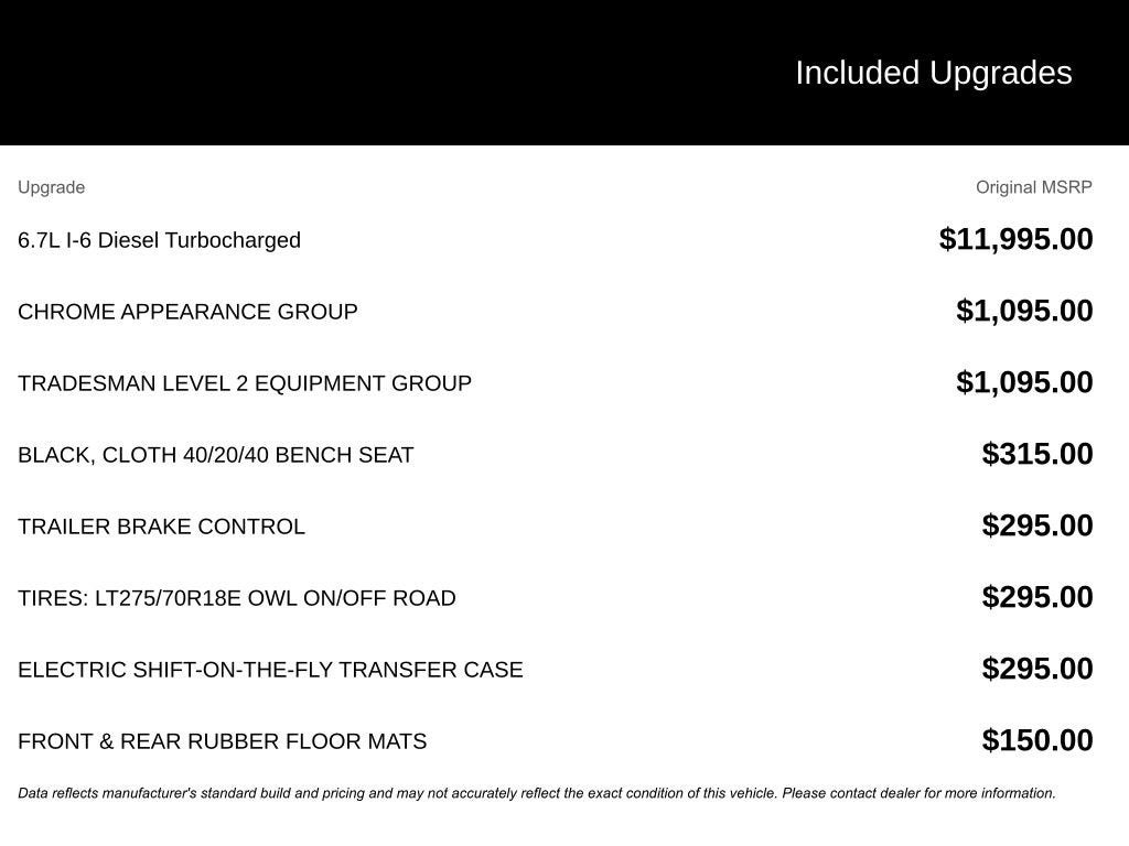 • 6.7L I-6 Diesel Turbocharged (Cummins)