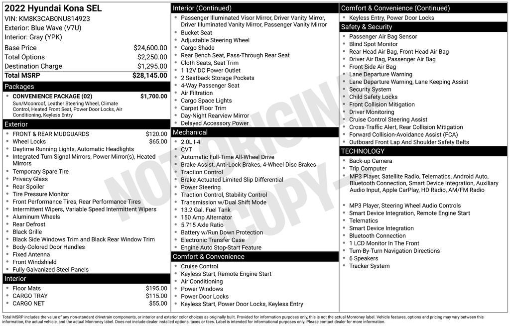 - Vehicle Name: Hyundai Kona