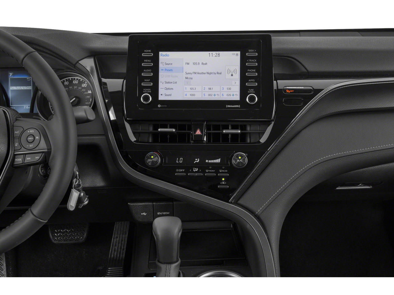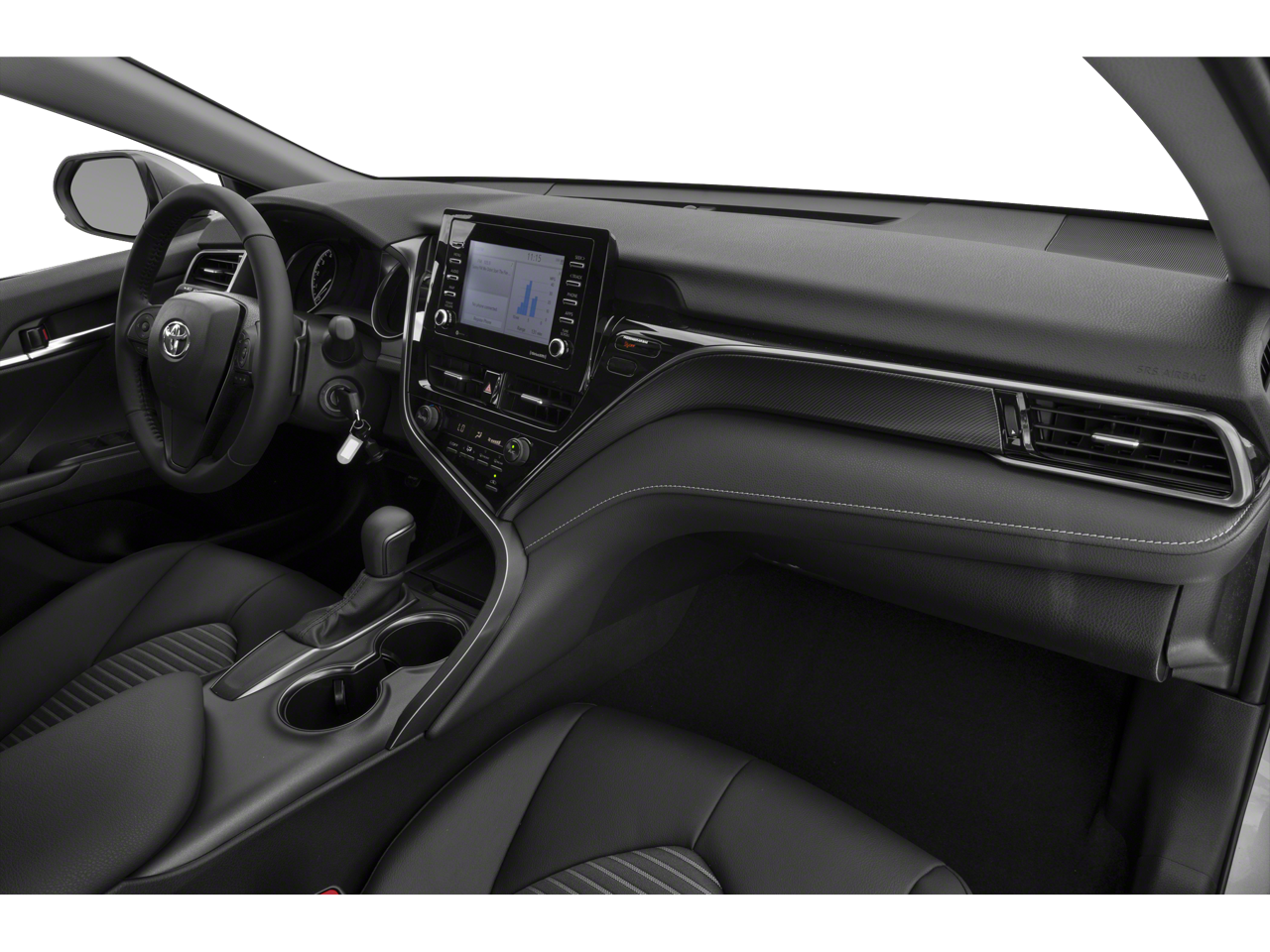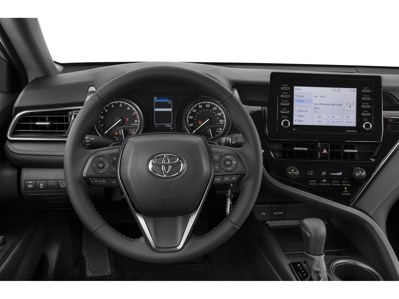 The Camry's interior is equally impressive, featuring a Fabric Seat Trim with Sport SofTex, a Front Center Armrest, and a Split Folding Rear Seat for maximum versatility. The 6-Speaker Audio System with SiriusXM and Apple CarPlay/Android Auto integration keeps you connected and entertained on the road.