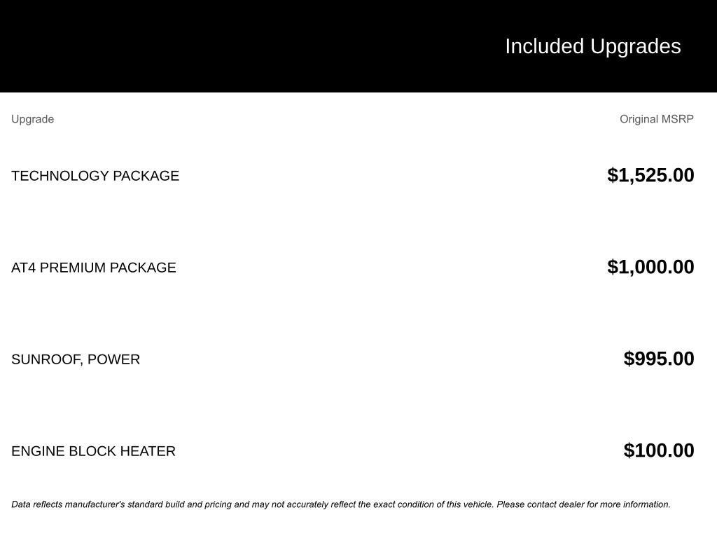 - AT4 Premium Package (Includes AT4 Preferred Package and Off-Road High Clearance Steps)