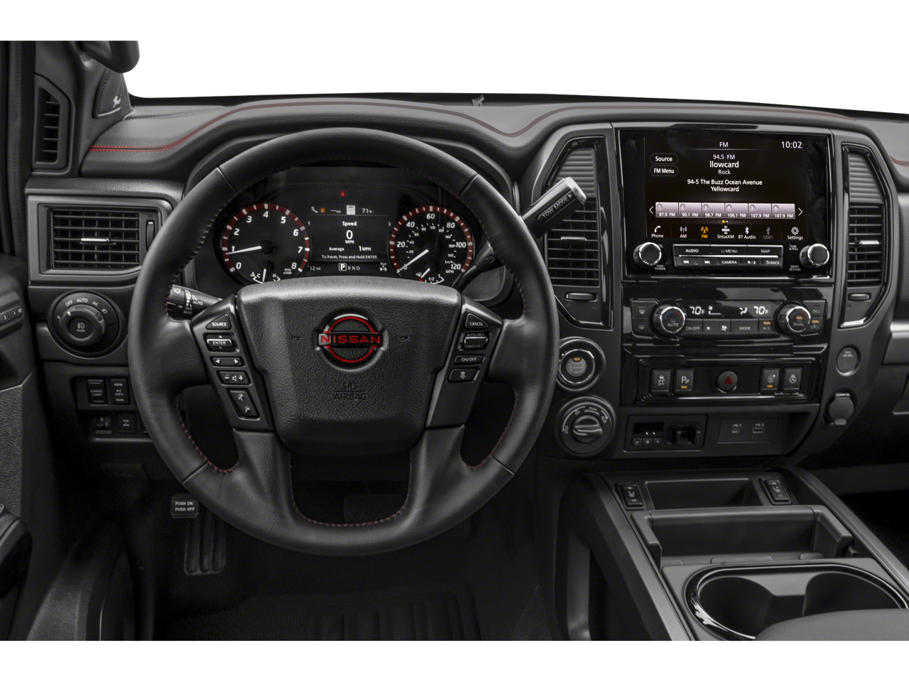 This 2024 Nissan Titan comes equipped with, 4WD, 3.692 Axle Ratio, 4-Way Power Assist Seat, 4-Wheel Disc Brakes, 6 Speakers, ABS brakes, Air Conditioning, Alloy wheels, AM/FM radio: SiriusXM, Apple CarPlay/Android Auto, Auto High-beam Headlights, Auto-dimming Rear-View mirror, Auto-leveling suspension, Automatic temperature control, Bed Assist Grip, Black Tow Mirror Kit (T93), Blind Spot Warning, Brake assist, Cloth Seat Trim w/Vinyl Bolsters, Compass, Delay-off headlights, Driver door bin, Driver Power Folding Auto Dimming Outside Mirrors, Driver vanity mirror, Dual front impact airbags, Dual front side impact airbags, Electronic Stability Control, Emergency communication system: NissanConnect Services, Front anti-roll bar, Front Bucket Seats, Front Captain's Seats, Front Center Armrest, Front dual zone A/C, Front fog lights, Front reading lights, Front wheel independent suspension, Fully automatic headlights, Garage door transmitter: HomeLink, Heated door mirrors, Heated Driver & Passenger Seat, Heated Rear Seats, Heated Tilt/Telescoping Steering Wheel, Illuminated entry, Intelligent Around View Monitor (I-AVM), Knee airbag, Leather Seat Trim, Leather steering wheel, Low tire pressure warning, Memory Driver Seat w/Auto Entry/Exit Feature, Navigation system: NissanConnect with Navigation and Services, Nissan Tailgate Audio by Kicker, Occupant sensing airbag, Outside temperature display, Overhead airbag, Overhead console, Panic alarm, Passenger door bin, Passenger vanity mirror, Power door mirrors, Power driver seat, Power steering, Power windows, PRO-4X Badged Floor Mats, PRO-4X Convenience Package, PRO-4X Illuminated Kick Plate, PRO-4X Mud Flaps, PRO-4X Rugged Step Boards, PRO-4X Utility Package, Proximity Activation, Radio data system, Radio: NissanConnect w/Navigation, Rain sensing wipers, Rear anti-roll bar, Rear Bumper Step w/Electronic Tailgate Lock, Rear Parking Sensors, Rear reading lights, Rear seat center armrest, Rear Seat Entertainment (H93), Rear step bumper, Rear Underseat Storage, Rear window defroster, Remote Engine Start on Key Fob, Remote keyless entry, Security system, Side Turn Signal Lamps on Mirror Housing, Speed control, Speed-sensing steering, Speed-Sensitive Wipers, Split folding rear seat, Steering wheel mounted audio controls, Tachometer, Telescoping steering wheel, Tilt steering wheel, Traction control, Trip computer, USB Charging Cables, Variably intermittent wipers, Voltmeter, Wheels: 18 x 8 Painted Dark Finish Alloy, 4WD. Clean CARFAX. Glacier White 2024 Nissan Titan PRO-4X 4WD 9-Speed Automatic 5.6L V8 DOHC 32V LEV3-ULEV70 400hp